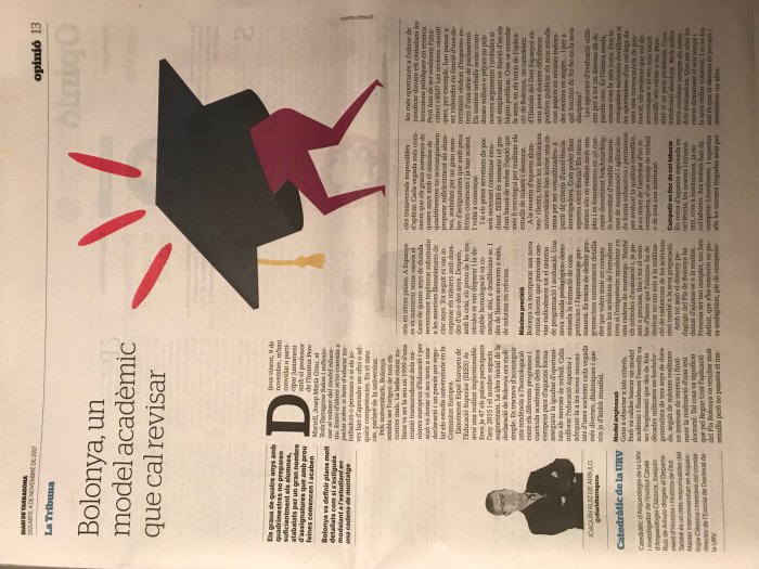 Bolonya, un model acadèmic que cal revisar és el titol del nou article públicat al Diari Tarrgona pel nostre director del departament, Joaquín Ruíz de Arbulo.