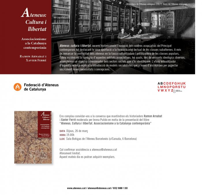 Presentació del llibre sobre l'ateneisme a Catalunya: "Ateneus: cultura i llibertat"