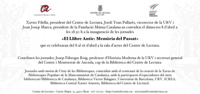 Jornades "El llibre antic: Memòria del passat"