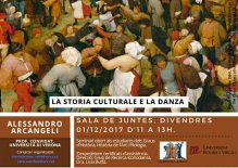El departament d'història i història de l'art té el plaer de presentar-vos un nou seminari. Ve de la mà de la nostra professora i Doctora de la casa Licia Buttà. Licia dirigirà un seminari: La storia culturale e la danza, amb Alessandro Arcangel de la universitat di Verona com a convidat. El dia 1 de Desembre de 2017. S'expediràn certifficats d'assitsència.