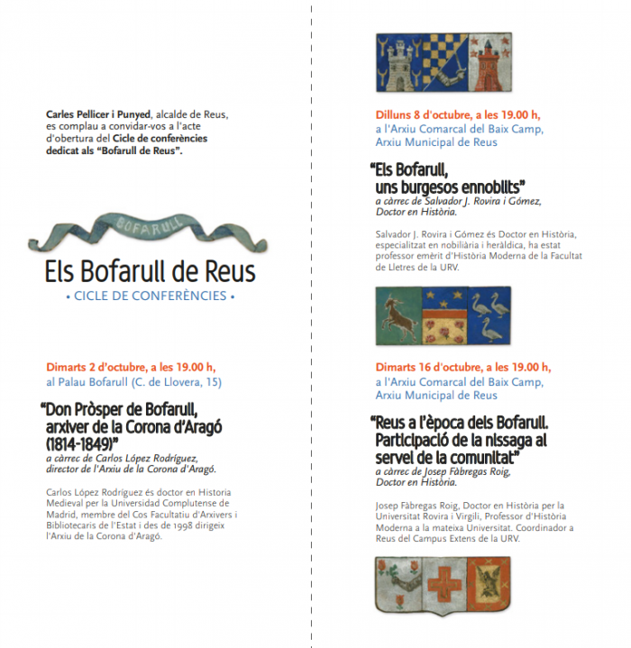 Cicles de conferències: Els Bofarull de Reus. "Els Bofarull a través dels documents d'arxiu" els dies 2,8 i 16.