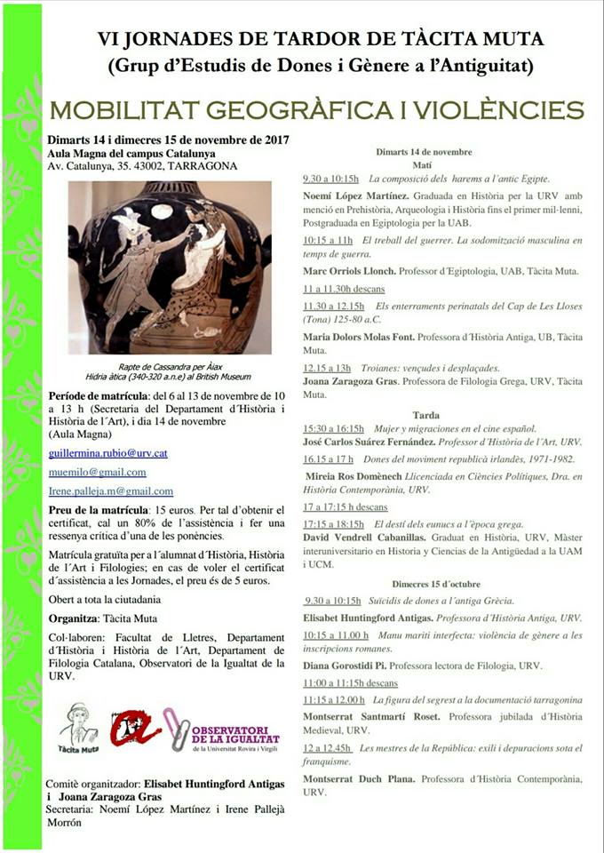VI Jornades de tardor Tàcita Muta (Grup d'Estudis de Dones i Gènere a l'Antiguitat)