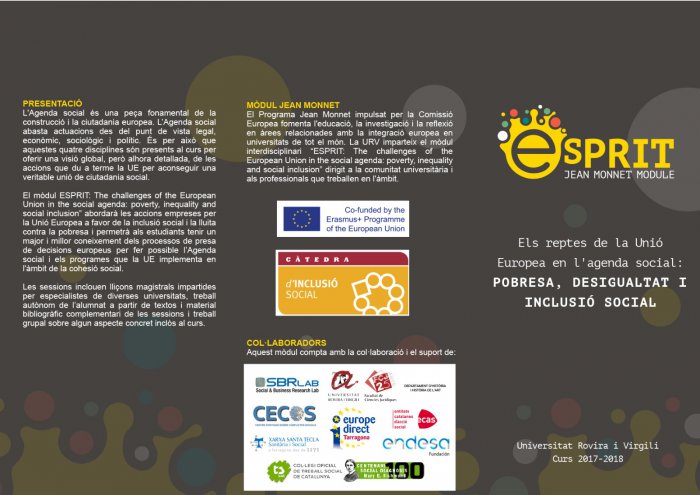 Durant el primer quadrimestre és realitzarà el mòdul Jean Monne: Els reptes de la unió Europea en l'agenda social: POBRESA, DESIGUALTAT I INCLUSIÓ SOCIAL